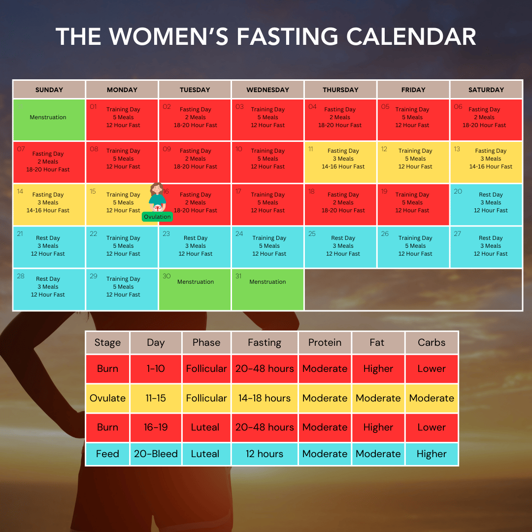 Short Burn Phase (Post-Ovulation): This is a brief period before the feeding phase, where a return to the 18-20 hour fasting window is beneficial, focusing again on a higher fat intake.