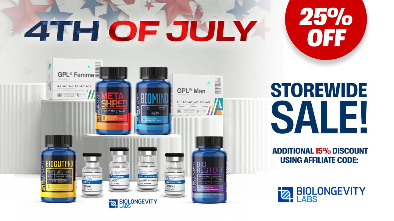 Today is the final day of the July 4th sale, which is still on at BioLongevity Labs. The entire store is 25% off, and when you use code HUNTERW at checkout, you get an extra 15% off your purchase.