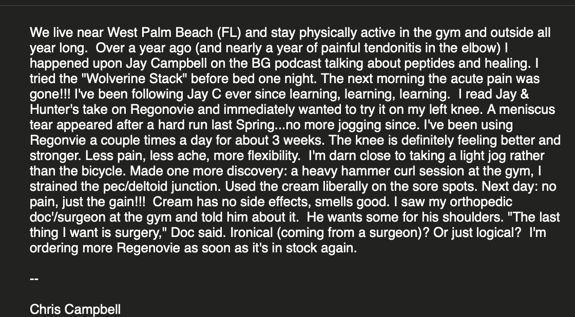 They were taking Regenovive, using it on themselves, and achieving stunning displays of rapid healing.